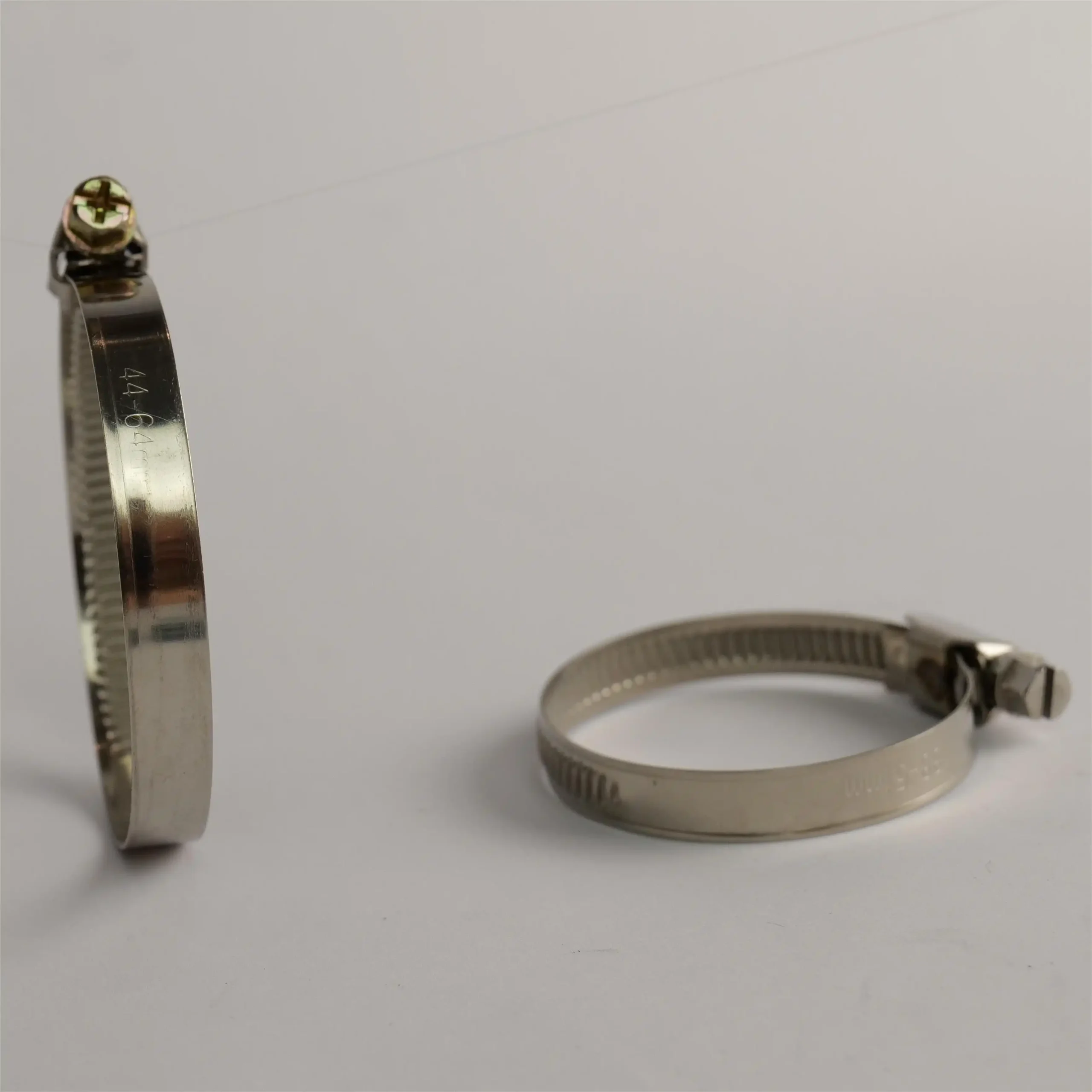 • Обработка краёв: У качественных немецких хомутов края ленты закруглены или скошены. Это сделано для того, чтобы при установке или использовании не повредить поверхность шланга. Так обеспечивается герметичность соединения и сохранность шланга. В некоторых дорогих моделях применяется специальная обработка роликами, чтобы края были ещё более гладкими.